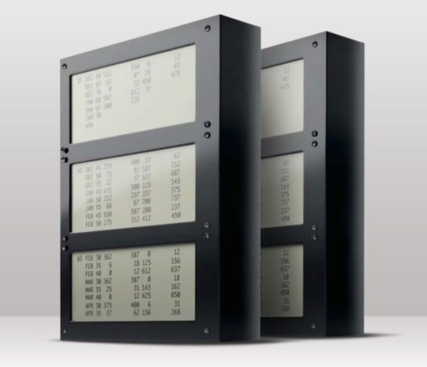 This was a period where trading followed an open-outcry system. Traders would frantically shout or use hand signals to communicate their orders in the trading pit. In fact, during this era, computers were prohibited on the AMEX trading floor[4]! Peterffy observed firsthand the inefficiencies of this archaic system and worked at night to develop his own algorithms (akin to the Black-Scholes model) to calculate the best price to trade each option. He would then print these cheat sheets daily and bring them with him to the trading floor, using them to determine the fair value of these options. Peterffy was the first to use these computer-generated fair value sheets on the trading floor.