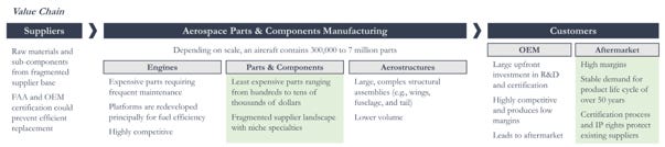 The graphic below gives a snapshot of the aerospace value chain and highlights where TDG derives the bulk of its earnings from.