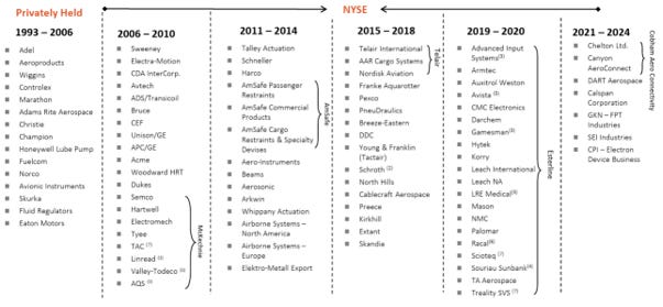 Below is a history of the numerous acquisitions TDG has made both as a private company as well as after it went public.